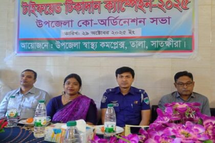 তালা প্রতিনিধি : সাতক্ষীরার তালায় পুষ্টি সচেতনতা ও শিখণ কার্যক্রম (পুষ্টি ক্যাম্পেইন) উপলক্ষ্যে র্যালী, আলোচনা সভা, নাটক, পটগান সাংস্কৃতিক অনুষ্ঠান অনুষ্ঠিত হয়েছে। শনিবার (২২ ফেব্রুয়ারী) সকালে তালার ভায়ড়ায় সাস এগ্রো টেকনোলজি পার্কে পল্লী কর্ম সহায়ক ফাউন্ডেশন (পিকেএসএফ) এর সহযোগীতায় সাতক্ষীরা উন্নয়ন সংস্থা (সাস) এই কর্মসূচী বাস্তবায়ন করে। অনুষ্ঠানে স্বাগত বক্তব্য রাখেন সাতক্ষীরা উন্নয়ন সংস্থা (সাস) এর নির্বাহী পরিচালক শেখ ইমান আলী। সাতক্ষীরা উন্নয়ন সংস্থা (সাস) এর সভাপতি আশুতোষ সরকারের সভাপতিত্বে ও প্রকল্প সমন্বয়ক খান মোঃ শাহ আলমের সঞ্চালনায় আলোচনা সভায় প্রধান অতিথি হিসেবে বক্তব্য রাখেন, পিকেএসএফ এর উপ-ব্যাপস্থাপনা পরিচালক ড. আকন্দ মোঃ রফিকুল ইসলাম। বিশেষ অতিথি হিসেবে বক্তব্য রাখেন, উপজেলা সিনিয়র মৎস্য কর্মকর্তা তারিক ইমাম, কৃষি সম্প্রসারণ কর্মকর্তা আফরোজা আক্তার রুমা, সেনেটারী ইন্সেপেক্টর খায়রুল আলম, পিকেএসএফ এর আরএমটিপি কর্মকর্তা ইব্রাহিম আলম ও উন্নয়ন প্রচেষ্টা’র নির্বাহী পরিচালক শেখ ইয়াকুব আলী। আলোচনা সভা শেষে পুষ্টি সচেতনতা ও শিখণ কার্যক্রম (পুষ্টি ক্যাম্পেইন) বিভিন্ন ধরণের স্টল অতিথি সহ সকলে পরিদর্শন করেন। দিবসটি উপলক্ষে দুপুরের পরে সচেতনতামূলক পটগাণ, নাটক ও রাতে সাংস্কৃতিক অনুষ্ঠানের আয়োজন করা হয়। এর আগে সকাল ১০ টায় বিভিন্ন শিক্ষা প্রতিষ্টানের শিক্ষার্থীদের নিয়ে র্যালী পুষ্টি সংক্রান্ত র্যালী বিভিন্ন সড়ক প্রদক্ষিণ করে।