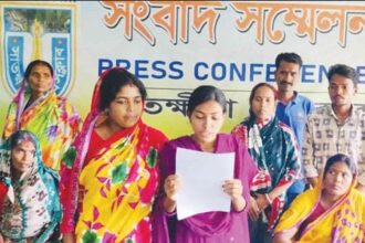 সিরাজুল ইসলাম, শ্যামনগর : সাতক্ষীরার শ্যামনগরের রমজাননগর গ্রামে ভূমিদস্যু কর্তৃক অসহায় ১০টি পরিবারের শতবছরের ভোগ দখলীয় পৈত্রিক ভিটাবাড়ি জবরদখল চেষ্টার অভিযোগ উঠেছে। বুধবার দুপরে সাতক্ষীরা প্রেসক্লাবের আব্দুল মোতালেব মিলনায়তনে এক সংবাদ সম্মেলনে ভুক্তভোগিদের পক্ষে রমজাননগর গ্রামের নির্মল বর্মন এর মেয়ে বনলতা বর্মন এই অভিযোগ করেন। লিখিত বক্তব্যে তিনি বলেন, শ্যামনগর উপজেলার রমজাননগর গ্রামে আমিসহ আরও ১০টি পরিবার আমাদের পৈত্রিক সম্পত্তিতে পরিবার পরিজন নিয়ে প্রায় ১০০ বছর যাবৎ শান্তিপূর্ণভাবে বসবাস করিয়া আসছি। কিন্তু গত প্রায় ২ মাস আগে থেকে এলাকার চিহিৃত ভূমিদস্যু ফ্যাসিস্ট আওয়ামী সরকারের অন্যতম দোসর কানাই লাল বর্মনের নেতৃত্বে কমলেশ, রাকেশসহ আরও ৫০/৬০ জন সন্ত্রাসী বাহিনী কর্তৃক জোরপূর্বক আমাদের উক্ত ভিটাবাড়ি দখলের পায়তারা করছে। তারা আমাদেরেকে ভিটাবাড়ি ছেড়ে চলে যেতে বলছে। না গেলে খুনজখম করবে বলে বিভিন্নভাবে হুমকি ধামকি দিচ্ছে। কানাই লাল আমাদেরকে দেশ ছেড়ে চলে যেতে বলছে। না গেলে বিনা পাসপোর্টে ভারতে পাঠিয়ে দিবে বলে প্রচার দিয়ে বেড়াচ্ছে। বনলতা বর্মন আরো বলেন, আমরা অত্যন্ত অসহায় ও গরীব মানুষ। দিন আনতে পান্তা ফুরায়। কায়িক পশ্রিমের মাধ্যমে কোন রকমে জীবিকা নির্বাহ করে শান্তিপূর্ণ পরিবার-পরিজন নিয়ে বসবাস করে আসছি। কিন্তু পরসম্পদ লোভি কানাই লাল নামক এক শকুনের চোখ পড়েছে আমাদের সম্পত্তির উপর। আমরা এই পরিবারগুলো বর্তমানে তার অত্যাচারে অতিষ্ট হয়ে অত্যান্ত মানবেতর জীবন যাপন করছি। তিনি অভিযোগ করে বলেন, কানাই লাল গংরা গত ৭ এপ্রিল সকাল ৮টার দিকে পুলিশ ও সন্ত্রাসী বাহিনী নিয়ে আমাদের পৈত্রিক জমি দখল করতে আসলে এলাকাবাসীর প্রতিবাদের মুখে তারা স্থান ত্যাগ করতে বাধ্য হয়। তবে যাওয়ার সময় হুমকি দিয়ে বলে যায় যে,শুক্রবারের দিন আমাদেও ১০টি পরিবারকে উচ্ছেদ করে জমি দখলে নিবে। এছাড়া মিথ্যা মামলা দিয়ে জেলে ঢুকিয়ে দেওয়ারও হুমকি দেয় তারা। এ কারণে আমরা সকলে অত্যন্ত ভীতসন্ত্রস্ত হয়ে চরম নিরাপত্তাহীনতায় ভুগছি। যে কোন সময় তাদের দ্বারা বড় ধরনের দুর্ঘটনা ঘটার সম্ভাবনা রয়েছে। তিনি ভূমিদস্যু কানাই লাল গংদের অত্যাচার নির্যাতন থেকে রক্ষা পেয়ে যাতে পরিবার পরিজন নিয়ে পৈত্রিক সম্পত্তিতে শান্তিপূর্নভাবে বসবাস করতে পারেন তার প্রয়োজনীয় ব্যবস্থা গ্রহণে জেলা প্রশাসক ও পুলিশ সুপার সহ সংশ্লিষ্ট কর্তৃপক্ষের জরুরী হস্তক্ষেপ কামনা করেন। সংবাদ সম্মেলনে রমজাননগর গ্রামের হরিদাস বর্মন, নির্মল বর্মন, নিমাই বর্মন, সুকুমার বর্মন, হরিদাসী, সুনীল বর্মন, তপতি মন্ডল ও বিমল বর্মন উপস্থিত ছিলেন ।