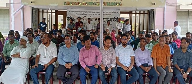 এদিকে ১ জুলাই থেকে শুরু হওয়া অনির্দিষ্টকালের কর্মবিরতির দ্বিতীয় দিন স্বতঃস্ফূর্তভাবে পালন করেছে বিশ্ববিদ্যালয়ের সকল বিভাগের শিক্ষকেরা। কর্ম বিরতির মধ্যে বিশ্ববিদ্যালয়ের প্রশাসনিক ভবনের সামনে বেলা ১২ টা থেকে ১ টা পর্যন্ত অবস্থান কর্মসূচি পালন করেন তারা। বিশ্ববিদ্যালয়ের শিক্ষক সমিতির সভাপতি প্রফেসর ড. মোঃ আব্দুল হাসিবের সভাপতিত্বে ও সাধারণ সম্পাদক ড. মোঃ আলমগীর হোসেনের সঞ্চালনায় অনুষ্ঠিত এ অবস্থান কর্মসূচিতে নিজেদের দাবির যৌক্তিকতা তুলে ধরে বক্তৃতা করেন বিশ্ববিদ্যালয়ের শিক্ষক প্রফেসর ড. এম এম এ হাসেম, প্রফেসর ড. মোঃ আবু ইউসুফ, প্রফেসর ড. মোহান্মদ আরিফুল ইসলাম, প্রফেসর ড. হেলাল- আন- নাহিয়ান, পলাশ সাহা প্রমূখ।