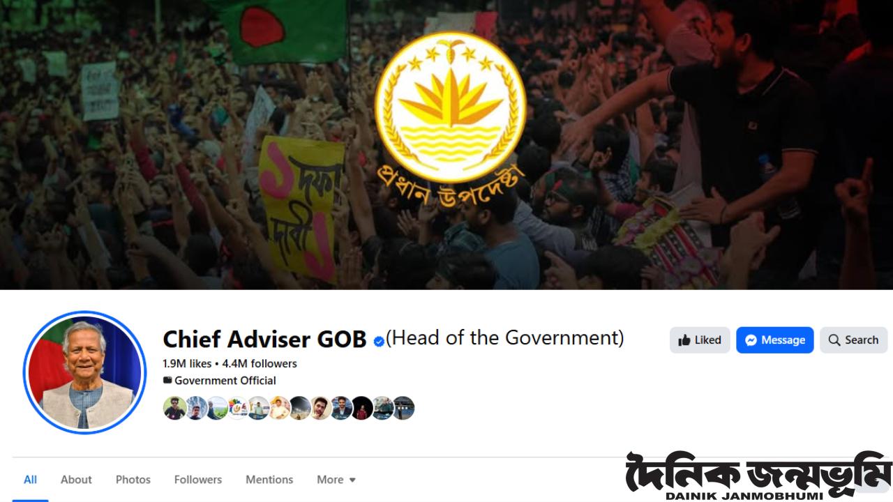 অন্তর্বর্তী সরকারের প্রধান উপদেষ্টার ফেসবুক পেজ বন্ধ ঘোষণা
