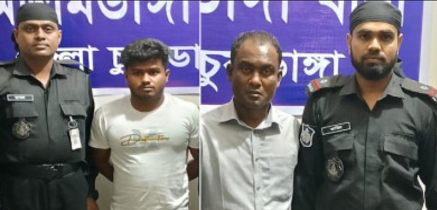 জন্মভূমি রিপোর্ট : চুয়াডাঙ্গার আলমডাঙ্গায় বাদেমাজু এলাকার চাঞ্চল্যকর তুষার আহমেদ সবুজ হত্যা মামলার ২৪ ঘণ্টার মধ্যে দুই আসামিকে গ্রেপ্তার করেছে র্যাপিড অ্যাকশন ব্যাটালিয়ন (র্যাব)। শুক্রবার (১৫ নভেম্বর) সন্ধ্যায় র্যাব-১২ সিপিসি-৩ মেহেরপুর কোম্পানি কমান্ডার অতিরিক্ত পুলিশ সুপার আশরাফউল্লাহ, পিপিএম এই তথ্য নিশ্চিত করেছেন। গ্রেপ্তাররা হলেন- আলমডাঙ্গা উপজেলার গোবিন্দপুর গ্রামের মো. সাহাদ আলীর ছেলে মো. সাগর আহমেদ (২০) ও চুয়াডাঙ্গা সদর উপজেলার কুতুবপুর গ্রামের ইউসুফ হোসেনের ছেলে মো. জহুরুল ইসলাম (৪৫)। পুলিশ সুপার জানান, গত ১৩ নভেম্বর, র্যাব-১২, সিপিসি-৩, মেহেরপুর কোম্পানি কমান্ড ও চুয়াডাঙ্গা সদর থানা পুলিশের যৌখ টিম তথ্যপ্রযুক্তির সহায়তায় অভিযান চালিয়ে আলমডাঙ্গা উপজেলা শহরের স্টেশন রোড এলাকা থেকে সাগর আহমেদকে গ্রেপ্তার করা হয়। পরে জিজ্ঞাসাবাদ করলে হত্যাকাণ্ডের কথা স্বীকার করেন তিনি। তার স্বীকারোক্তিতে এই ঘটনার সঙ্গে জড়িত অপর আসামি জহুরুল ইসলামকে আলমডাঙ্গা উপজেলা শহরের সরকারি খাদ্য গুদাম গেটের সামনে থেকে গ্রেপ্তার করা হয়।