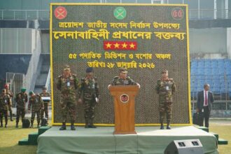 আজ সেনাবাহিনী প্রধান জেনারেল ওয়াকার-উজ-জামান, এসবিপি, ওএসপি, এসজিপি, পিএসসি আসন্ন ত্রয়োদশ জাতীয় সংসদ নির্বাচন ও গণভোট-২০২৬ উপলক্ষ্যে সার্বিক আইনশৃঙ্খলা পরিস্থিতি মূল্যায়ন এবং ‘ইন এইড টু দ্য সিভিল পাওয়ার’ এর আওতায় মোতায়েনরত সেনাসদস্যদের পরিদর্শনের লক্ষ্যে খুলনা পরিদর্শন করেন। পরিদর্শনকালে, সেনাবাহিনী প্রধান মোতায়েনকৃত সেনাসদস্যদের কার্যক্রম সরেজমিনে পর্যবেক্ষণ ও প্রয়োজনীয় দিকনির্দেশনা প্রদান এবং অসামরিক প্রশাসনের সাথে মতবিনিময় করেন। সফরকালে, সেনাবাহিনী প্রধান খুলনা বিভাগীয় কমিশনারের কার্যালয়ে আয়োজিত এক সভায় ঊর্ধ্বতন পর্যায়ের সামরিক, বিভাগীয় ও জেলা প্রশাসন এবং বিভিন্ন আইনশৃঙ্খলা রক্ষাকারী বাহিনীর কর্মকর্তাদের সাথে মত বিনিময় করেন। মত বিনিময়কালে, আসন্ন জাতীয় সংসদ নির্বাচনকে শান্তিপূর্ণ, নিরপেক্ষ ও সুষ্ঠুভাবে সম্পন্ন করার লক্ষ্যে আন্তঃপ্রাতিষ্ঠানিক সমন্বয় এবং সামগ্রিক নিরাপত্তা ব্যবস্থাপনা নিয়ে আলোচনা হয়। সেনাপ্রধান পেশাদারিত্ব, নিরপেক্ষতা, শৃঙ্খলা, ধৈর্য ও নাগরিকবান্ধব আচরণের মাধ্যমে দায়িত্ব পালনের উপর বিশেষ গুরুত্বারোপ করেন। খুলনা পরিদর্শনকালে, জেনারেল অফিসার কমান্ডিং, আর্মি ট্রেনিং এন্ড ডকট্রিন কমান্ড; জিওসি, ৫৫ পদাতিক ডিভিশন ও এরিয়া কমান্ডার, যশোর এরিয়া এবং সেনাসদর ও যশোর এরিয়ার ঊর্ধ্বতন সামরিক কর্মকর্তাবৃন্দের পাশাপাশি খুলনা বিভাগীয় কমিশনার, অসামরিক প্রশাসন ও আইন-শৃঙ্খলা রক্ষাকারী বাহিনীর ঊর্ধ্বতন কর্মকর্তাগণ এবং বিভিন্ন গণমাধ্যমের প্রতিনিধিবৃন্দ উপস্থিত ছিলেন।