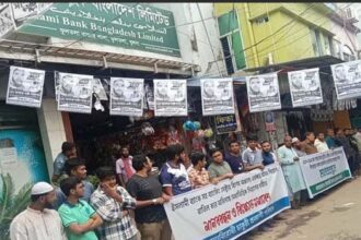 ফুলতলা প্রতিনিধি : ইসলামী ব্যাংক গ্রাহক ফোরাম ও বৈষম্য বিরোধী চাকুরী প্রত্যাশী পরিষদের যৌথ উদ্যোগে ২০১৭ সাল থেকে ২০২৪ সাল পর্যন্ত ইসলামী ব্যাংকসহ ব্যাংকিং সেক্টরে ব্যাংক লুটেরা ও মাফিয়া এস আলম কর্তৃক প্রয়োজনীয় শিক্ষাগত যোগ্যতা ছাড়াই বিশেষ অঞ্চলের একচ্ছত্র অবৈধভাবে নিয়োগকৃত অদক্ষ কর্মকর্তা-কর্মচারীদের অনতিবিলম্বেই ছাঁটাই করে মেধাভিত্তিক নিয়োগের দাবিতে সোমবার সকাল সাড়ে ৯টায় ইসলামী ব্যাংক বাংলাদেশ পিএলসি ফুলতলা শাখার সামনে রফিক সড়কে এক মানববন্ধন কর্মসূচি পালিত হয়। ফোরামের সভাপতি আলী আকবর মোড়লের সভাপতিত্বে অনুষ্ঠিত মানববন্ধনে অন্যান্যের মধ্যে বক্তৃতা করেন অধ্যাপক মাওলানা শেখ ওবায়দুল্লাহ, মোঃ শাহজাহান মোল্যা, আঃ রহিম খাঁন, তাবিব হাসান, মোঃ ইয়ামিন গাজী, মোঃ রিফাদ গাজী, শাওন বিশ্বাস প্রমুখ। মানববন্ধনে বক্তারা অবিলম্বে অবৈধ নিয়োগকৃতদের ছাটাইপূর্বক বিধিসম্মত ভাবে প্রকৃত মেধাবীদের নিয়োগের জোর দাবি জানানো হয়।