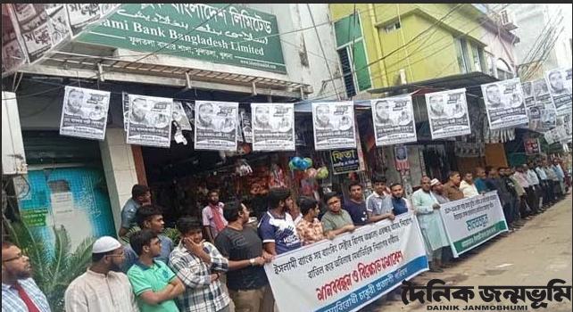 ফুলতলা প্রতিনিধি : ইসলামী ব্যাংক গ্রাহক ফোরাম ও বৈষম্য বিরোধী চাকুরী প্রত্যাশী পরিষদের যৌথ উদ্যোগে ২০১৭ সাল থেকে ২০২৪ সাল পর্যন্ত ইসলামী ব্যাংকসহ ব্যাংকিং সেক্টরে ব্যাংক লুটেরা ও মাফিয়া এস আলম কর্তৃক প্রয়োজনীয় শিক্ষাগত যোগ্যতা ছাড়াই বিশেষ অঞ্চলের একচ্ছত্র অবৈধভাবে নিয়োগকৃত অদক্ষ কর্মকর্তা-কর্মচারীদের অনতিবিলম্বেই ছাঁটাই করে মেধাভিত্তিক নিয়োগের দাবিতে সোমবার সকাল সাড়ে ৯টায় ইসলামী ব্যাংক বাংলাদেশ পিএলসি ফুলতলা শাখার সামনে রফিক সড়কে এক মানববন্ধন কর্মসূচি পালিত হয়। ফোরামের সভাপতি আলী আকবর মোড়লের সভাপতিত্বে অনুষ্ঠিত মানববন্ধনে অন্যান্যের মধ্যে বক্তৃতা করেন অধ্যাপক মাওলানা শেখ ওবায়দুল্লাহ, মোঃ শাহজাহান মোল্যা, আঃ রহিম খাঁন, তাবিব হাসান, মোঃ ইয়ামিন গাজী, মোঃ রিফাদ গাজী, শাওন বিশ্বাস প্রমুখ। মানববন্ধনে বক্তারা অবিলম্বে অবৈধ নিয়োগকৃতদের ছাটাইপূর্বক বিধিসম্মত ভাবে প্রকৃত মেধাবীদের নিয়োগের জোর দাবি জানানো হয়।