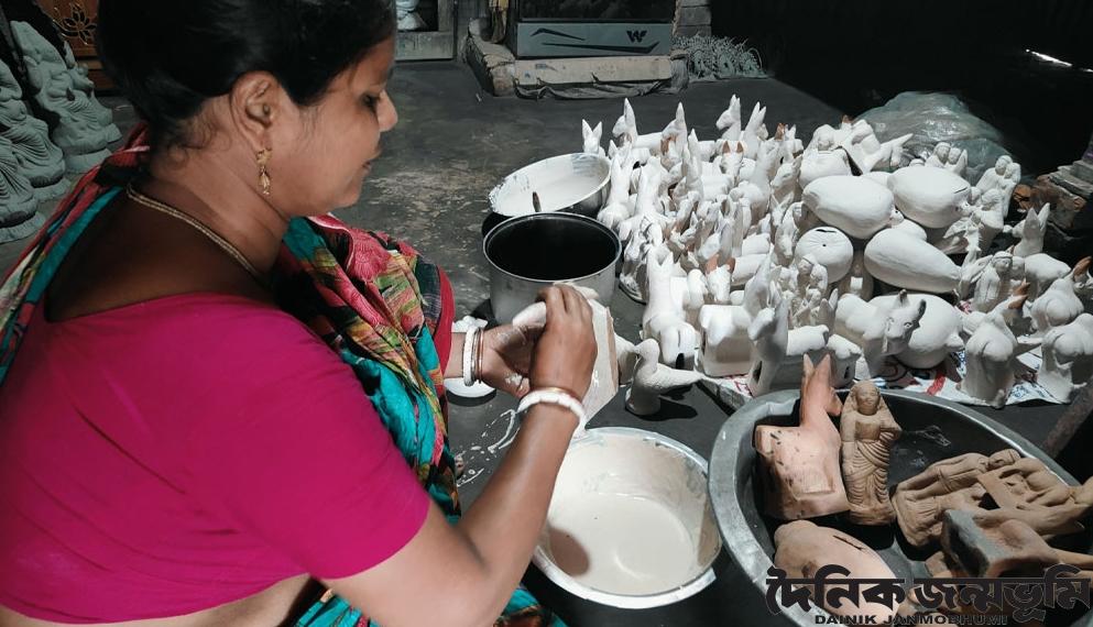 তিনি বলেন, 'বাপ-দাদার আমল থেকে আমরা এই কাজ করে আসছি। পূজার সময় প্রতিমা তৈরি করি। বছরের অন্যান্য উৎসবের সময় মাটির হাতি, ঘোড়া, বাঘ, হরিণ, ময়ূর, কাঁঠাল, আম, পেঁপে, আপেল, হাড়ি, পাতিল ও মাটির ব্যাংকসহ বিভিন্ন খেলনা তৈরি এবং বিক্রি করি।'