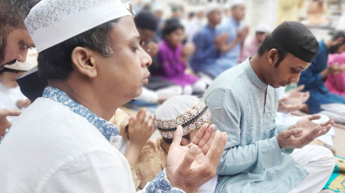 ঈদ জামাতে দেশ ও জাতির কল্যাণ কামনা করে দোয়া