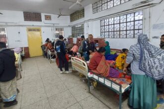 শিশু ও মেডিসিন ওয়ার্ডে ধারণক্ষমতার চেয়ে কয়েক গুণ বেশি রোগী ভর্তি হওয়ায় শয্যা সংকট দেখা দিয়েছে, অনেককে মেঝে ও বারান্দায় চিকিৎসা নিতে হচ্ছে।