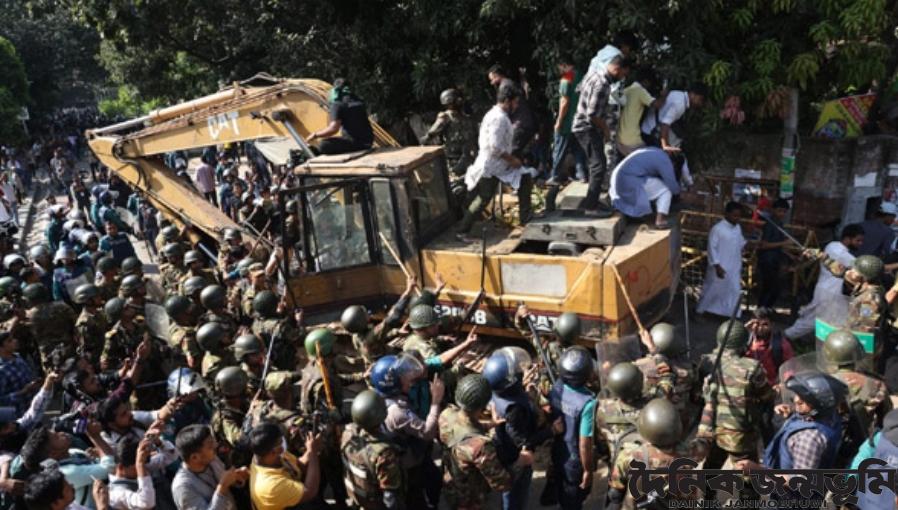ডেস্ক রিপোর্ট : ধানমন্ডি ৩২ নম্বরে এক্সকাভেটর নিয়ে প্রবেশের চেষ্টাকালে বিক্ষোভকারীদের লাঠিপেটা করে সরিয়ে দিয়েছে পুলিশ ও সেনাবাহিনী। এ সময় পুলিশ ও সেনাবাহিনীকে লক্ষ্য করে ইট-পাটকেল নিক্ষেপ করে বিক্ষোভকারীরা।