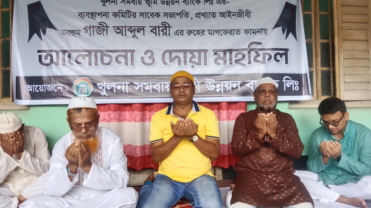 বিজ্ঞপ্তি : খুলনা সমবায় ভূমি উন্নয়ন ব্যাংক লিঃ এর ব্যবস্থাপনা কমিটির সাবেক সভাপতি, বিশিষ্ট সংগঠক,প্রখ্যাত আইনজীবী মরহুম গাজী আঃ বারী’র রুহের মাগফিরাত কামনায় দোয়া মাহফিল ও আলোচনা সভা অনুষ্ঠিত হয়েছে।