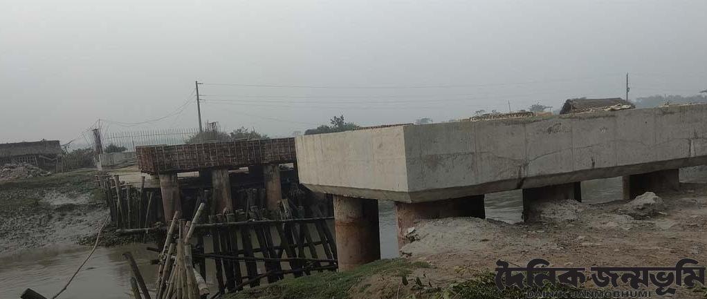 সরেজমিন দেখা গেছে, নদের দুপারে অসম্পন্ন ৪টি পিলার নির্মাণ করে রাখা হয়েছে। ছড়িয়ে ছিটিয়ে রয়েছে কিছু বালু আর খোয়া।