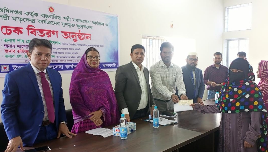 কাঠালিয়া (ঝালকাঠি) প্রতিনিধি: ঝালকাঠির কাঠালিয়ায় সমাজসেবা অফিসের বাস্তবায়িত পল্লী সমাজসেবা কার্যক্রম(আরএসএস) ও পল্লী মাতৃকেন্দ্র কার্যক্রমের উদ্যোগে সুদ মুক্ত ১৬৫ জন উপকারভোগীদের মাঝে ক্ষুদ্রঋণের আওতায় ৫০ লাখ ২২ হাজার ৫০০টাকা ঋণের চেক বিতরণ করা হয়েছে। বুধবার (৪ ডিসেম্বর) দুপুর ১২ টায় উপজেলা অফিসার্স ক্লাব মিলনায়তনে এ বিতরণী ও আলোচনা অনুষ্ঠিত হয়। এতে প্রধান অতিথি ছিলেন সমাজসেবা অধিদপ্তর এর বরিশাল বিভাগীয় কার্যালয়ের পরিচালক (উপসচিব) শাহ মো. রফিকুল ইসলাম। উপজেলা নির্বাহী অফিসার জহিরুল ইসলামের সভাপতিত্বে বিশেষ অতিথি ছিলেন ঝালকাঠি উপপরিচালক শাহপার পারভীন, সহকারী পরিচালক মো. মোস্তাফিজুর রহমান। অনুষ্ঠানে স্বগত বক্তব্য রাখেন উপজেলা সমাজসেবা কর্মকর্তা এসএম দেলোয়ার হোসেন।