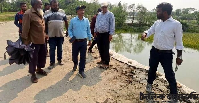 সিরাজুল ইসলাম শ্যামনগর : কালিগঞ্জের কালিন্দী, ইছামতি ও যমুনা নদীর ত্রিমোহনার পোর্ট বসন্তপুরে বেড়িবাঁধে ভাঙন এলাকা পরিদর্শন করেছেন পানি উন্নয়ন বোর্ড খুলনার অতিরিক্ত প্রধান প্রকৌশলী বিদ্যুৎ কুমার সাহা। সোমবার দুপুর আড়াইটার দিকে পোর্ট বসন্তপুর ভাঙ্গন কবলিত এলাকার বেড়িবাঁধ মেরামতের কাজ সরেজমিনে পরিদর্শনে করেন। তিনি বলেন, ওয়াপদার বেড়িবাধেঁর তলা ছিদ্র করে বসানো ঝকিপূর্ণ পাইপ গুলো দ্রæত সময়ের মধ্যে অপসরণ করা হবে। এসময় আরো উপস্থিত ছিলেন খুলনা সার্কেলের তত্বাবধায়ক প্রকৌশলী সৈয়েদ শহিদুল আলম, সাতক্ষীরা পানি উন্নয়ন বিভাগ-১ এর নিবাহী প্রকৌশলী মোঃ সালাউদ্দিন, কালিগঞ্জ পানি উন্নয়ন বোর্ডের উপ-বিভাগীয় প্রকৌশলী শুভেন্দু বিশ^াস, শ্যামনগর পানি উন্নয়ন বোর্ডের উপ-বিভাগীয় প্রকৌশলী ইমরান সরদার প্রমুখ। উল্লেখ্যঃ গত রবিবার রাতে বাংলাদেশ-ভারত সীমান্তের পোর্ট বসন্তপুর বলরামের চরে বেড়িবাঁধে আকস্মিকভাবে ভাঙন দেখা দিলে পাঁকা পিচের রাস্তার অর্ধেক ধসে। এতে করে এলাকাবাসির মাঝে আতঙ্ক ছড়িয়ে পড়ে। খবর পেয়ে পানি উন্নয়ন বোর্ডের সংশ্লিষ্ট কর্মকর্তারা সকাল থেকে গভীর রাত পর্যন্ত দ্রæত মেরামতের কাজ শেষ করেন। এছাড়াও একই এলাকায় বেড়িবাঁধে আরো ৪টি স্থান চরম ঝুঁকির মধ্যে রয়েছে। স্থানীয় বসবাসকারী ব্যাক্তিরা বলেন, পোর্ট বসন্তপুরের নদীর ভাঙ্গন স্থায়ী সমাধান না হলে সীমান্তরক্ষী বাহিনী বিজিবির নিয়মিত টহল ব্যাহত হবে। সেই সাথে ঝুঁকির মধ্যে থাকবে বসন্তপুর তহশীল অফিস, একাধিক মসজিদ, হযরত বুলা সৈয়েদ পীরের দরবার শরীফসহ বিভিন্ন শিক্ষাপ্রতিষ্ঠান এবং এলাকার হাজার হাজার পরিবার। বিকেলে কালিগঞ্জ পানি উন্নয়ন বোর্ডের উপ-বিভাগীয় প্রকৌশলী শুভেন্দু বিশ^াস এলাকা পরিদর্শন শেষে সাংবাদিকদের বলেন, দ্রæততম সময়ের মধ্যে মেরামত কাজ শেষ করা হবে। আপাতত জরুরি ভিত্তিতে কাজ শুরু করা হলেও স্থায়ী সমাধানের জন্য আলাদা প্রকল্প গ্রহণের পরিকল্পনা রয়েছে। স্থানীয় বাসিন্দারা জানান, বর্ষা মৌসুমের আগে ভাঙন কবলিত এলাকা গুলোতে জরুরি ভিত্তিতে কার্যকর স্থায়ী ব্যবস্থা গ্রহন না করা হলে সীমান্ত এলাকার অনেক বাড়িঘর ও রাস্তাঘাট, শিক্ষা প্রতিষ্ঠান, অফিস আদালত বড় ধরণের হুমকির মুখে পড়বে। এসময় উপস্থিত ছিলেন সাংবাদিক সুকামার দাশ বাচ্চু, এসএম, আহম্মাদ উল্যাহ বাচ্চু, ইশারাত আলী, ফজলুল হক, ফরিদুল কবির, জাহাঙ্গীর আলম প্রমুখ।