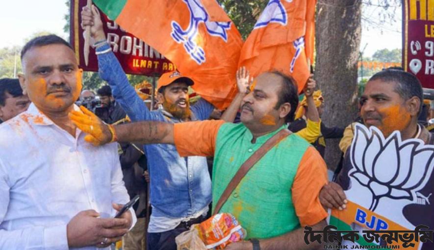 এদিকে, দিল্লির বিধানসভা নির্বাচনে এগিয়ে থাকার খবরে দুপুর থেকেই প্রধানমন্ত্রী নরেন্দ্র মোদির মুখোশ পরে বিজয়োল্লাস শুরু করে বিজেপির নেতাকর্মীরা।
