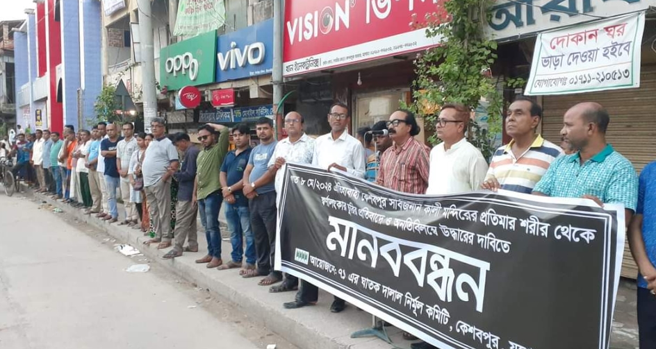 কেশবপুর প্রতিনিধি : কেশবপুরে সার্ব্বজনীন শ্রী শ্রী কালী মন্দিরে দুর্ধর্ষ চুরির ঘটনা মানববন্ধন পালিত হয়। ১ জুন বিকাল ৫ টায় ৭১ ঘাতক দালাল নির্মূল কমিটির উদ্যোগে এই মানববন্ধন কর্মসূচি পালন করা হয়।