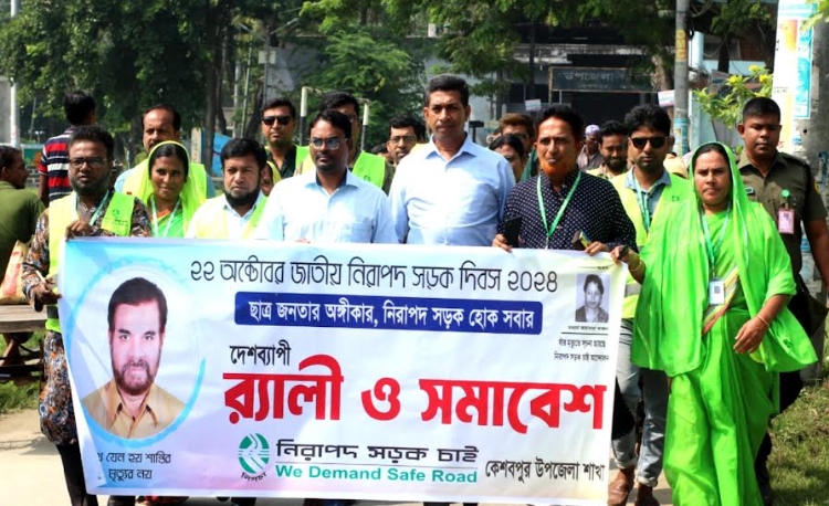 কেশবপুর প্রতিনিধি : কেশবপুর জাতীয় নিরাপদ সড়ক দিবস উদযাপন করা হয়। ছাত্র-জনতার অঙ্গীকার, নিরাপদ সড়ক হোক সবার” এই প্রতিপাদ্যকে সামনে রেখে ২২ অক্টোবর মঙ্গলবার জাতীয় নিরাপদ সড়ক দিবস-২০২৪ উদযাপন উপলক্ষ্যে নিরাপদ সড়ক চাই কেশবপুর নিরাপদ সড়ক চাই এর পক্ষ র্যালি ও সমাবেশের আয়োজন করেন নিরাপদ সড়ক চাই কেশবপুর উপজেলা শাখার সভাপতি কেশবপুর নিউজ ক্লাবের সাধারণ সম্পাদক সাংবাদিক মোঃ হারুনার রশীদ বুলবুল এর নেতৃত্বে। উক্ত অনুষ্ঠানে প্রধান অতিথি হিসেবে উপস্থিত ছিলেন কেশবপুর উপজেলা নির্বাহী অফিসার নিরাপদ সড়ক চাই কেশবপুর উপজেলা শাখা প্রধান উপদেষ্টা মোঃ জাকির হোসেন, বিশেষ অতিথি হিসেবে উপস্থিত ছিলেন নিরাপদ সড়ক চাই কেশবপুর উপজেলা শাখার উপদেষ্টা কেশবপুর নিউজ ক্লাবের সভাপতি মোঃ আশরাফুজ্জামান, বিশেষ অতিথি হিসেবে উপস্থিত ছিলেন কেশবপুর প্রেসক্লাবের সভাপতি মোঃ ওয়াজেদ খান ডাবলু, ২২ অক্টোবর মঙ্গলবার সকাল ১০ টায় কেশবপুর উপজেলা চত্বর থেকে র্যালি নিয়ে কেশবপুর ত্রিমহিনী মোড়, হাসপাতাল রোড, কেশবপুর মেইন রোড সহ বিভিন্ন পয়েন্টে নিরাপদ সড়ক চাই কেশবপুর উপজেলা শাখার নেতৃবৃন্দ কেশবপুর বাজারের বিভিন্ন পয়েন্টে সড়কে আইন শৃঙ্খলা ও ট্রাফিক আইন মেনে সড়কে চলার উপর জনসচেতনতা সৃষ্টির লক্ষ্যে সকলের দৃষ্টি আকর্ষণ করতে প্রচারণা করেন। উক্ত অনুষ্ঠানে আরও উপস্থিত ছিলেন নিরাপদ সড়ক চাই কেশবপুর উপজেলা শাখার সহ- সভাপতি মোঃ আবুল কালাম আজাদ,সহ-সভাপতি সাংবাদিক প্রদীপ কুমার মোদক মানিক সহ- সভাপতি মোঃ সেলিম রেজা, সাধারণ সম্পাদক মোঃ ইউছুফ আলী , নিসচা সদস্য সাংবাদিক রাজীব চৌধুরী, সহ-সাধারণ সম্পাদক শাহনাজ পারভিন,সাংগঠনিক সম্পাদক মোঃ শাহজাহান কবীর , নিসচা সদস্য সাংবাদিক মনোতোষ কুমার দাস, নিসচা সদস্য বৃন্দ সাংবাদিক সুশান্ত কুমার মল্লিক,নিসচা সদস্য, সাংবাদিক রাজীব চৌধুরী, সাংবাদিক মোঃ আব্দুল করিম, নিউজ ক্লাবের সহ-সাংগঠনিক সম্পাদক সাংবাদিক মোঃ মোস্তাফিজুর রহমান মিন্টু, আলমগীর হোসেন ,মোঃ রফিকুল ইসলাম উজ্জ্বল , সাংবাদিক মোঃ আবুল কালাম আজাদ, ,সাংবাদিক আজিজুর রহমান, মোঃ আসাদুজ্জামান আছাদ, রাজু আহমেদ, সাংবাদিক আবু সালেহ মাসুদ হাসান , নিসচার সদস্য , সাংবাদিক মোঃ আব্দুল মোমিন, সাংবাদিক আব্দুল জলিল, সাংবাদিক তাহমিনা খাতুন, শরিফা খাতুন, আছিয়া খাতুন, মমতাজ বেগম, কেশবপুর নিউজ ক্লাবের সাংবাদিক আব্দুল রহমান রকি, , নিসচা সদস্য মোঃ আসাদুজ্জামান, চম্পা রানী, মোঃ আবু হুরাইরা বর্ষণ প্রমুখ।