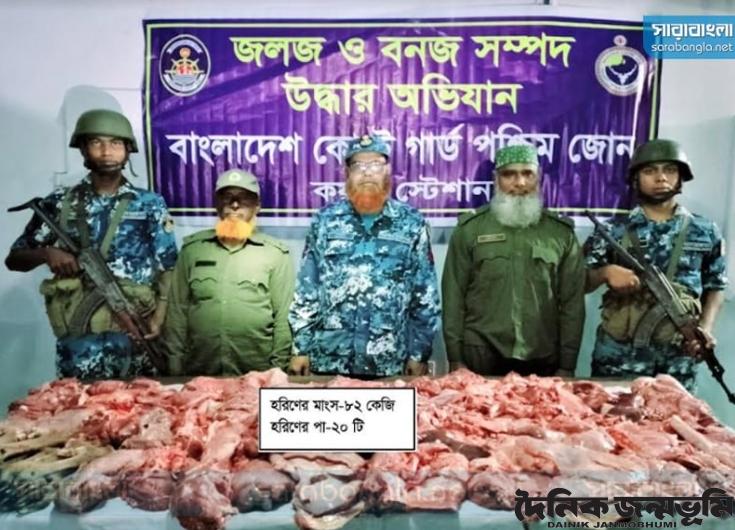 সিরাজুল ইসলাম, শ্যামনগর : সুন্দরবনে থামছে না হরিণ শিকার। সঙ্গবদ্ধ চোরাশিকারী চক্র বেপরোয়াভাবে সুন্দরবনে হরিণ নিধন করে চলেছে। সুন্দরবনের কচিখালি হরিণ পাচারের এখন নিরাপদ রুট। হরিণ পাচার প্রতিরোধে বনরক্ষীদের ভূমিকা নিয়ে জনমনে প্রশ্ন উঠতে শুরু করেছে। গত একমাসে কোস্টগার্ডের হাতে উদ্ধার হয়েছে ১২ মণ হরিণের মাংস। আটক হয়েছে ৯ হরিণ শিকারী সহ হরিণ ধরা ফাঁদ ও ট্রলার বন সংশ্লিষ্ট বিভিন্ন সূত্রে প্রাপ্ত তথ্যে জানা যায়, সাম্প্রতিক কালে সুন্দরবন থেকে হরিণ পাঁচার বৃদ্ধি পেয়েছে। একটি সঙ্গবদ্ধ হরিণ শিকারী চক্র প্রতিনিয়ত সুন্দরবনে হরিণ শিকার করে চলেছে। সুন্দরবনের শরণখোলা রেঞ্জের কচিখালি, চান্দেশ^র, ডিমের চর এবং শরণখোলা উপজেলার পানির ঘাট ও সোনাতলা এলাকা হরিণ পাচারের নিরাপদ রুট হিসেবে ব্যবহার হচ্ছে। নাম প্রকাশে অনিচ্ছুক প্রত্যক্ষদর্শীরা জানান, বরগুনার পাথরঘাটার চরদোয়ানি, কাঠালতলি ও জ্ঞানপাড়া এলাকার একটি সঙ্গবদ্ধ হরিণ শিকারী চক্র রাতের আধারে সুন্দরবনের কচিখালি, চান্দেশ^র, ডিমেরচর এলাকা দিয়ে প্রতিনিয়ত ফাঁদ পেতে হরিণ শিকার করে নিয়ে যাচ্ছে। অপরদিকে চোরাশিকারীরা সুন্দরবন থেকে হরিণ শিকার করে এনে শরণখোলার সোনাতলা, পানিরঘাট এলাকা দিয়ে বিভিন্ন যায়গায় হরিণের মাংস পাচার করছে। গত ১৫ এপ্রিল কোস্টগার্ড দক্ষিনজোন পাথরঘাটার সদস্যরা পাথরঘাটা কাঠালতলী এলাকা থেকে ৩৫ কেজি হরিণের মাংস সহ এক শিকারীকে আটক করে। আটক শিকারীর নাম রেজাউল ইসলাম (২৫) এর বাড়ি পাথরঘাটার হোসেনপুর গ্রামে। এ ঘটনা ছাড়া বাংলাদেশ কোস্টগার্ড পশ্চিমজোনর মোংলার সদস্যরা গত এক মাসের মধ্যে পৃথক পৃথক অভিযানে আট জন হরিণ শিকারীকে আটক করে। এসময় উদ্ধার করে ৪২৩ কেজি হরিণের মাংস। জব্দ করে বিপুল পরিমাণ হরিণ ধরা ফাঁদ ও কয়েকটি ট্রলার। এর মধ্যে ১৮ এপ্রিল মোংলা জয়মণি থেকে ৩১ কেজি হরিণের মাংস ও একটি মাথা। ১১ এপ্রিল জয়মণি বালুর মাঠ থেকে ২৪ কেজি মাংস, হরিণের চামড়া ও একটি নৌকা, ৮ এপ্রিল নলিয়ান ঠাকুরবাড়ি এলাকায় ১১০ কেজি মাংস ২টি নৌকা ও আরিফুল সরদার (২৪) নামে একজন শিকারী আটক হয়। ১৬ ই মার্চ মোংলার জয়মণি ও শ্যামনগরের সুন্দরবন বাজার এলাকায় উদ্ধার হয় ২০৫ কেজি হরিণের মাংস ২টি মাথা, ২ টি চামড়া এ ঘটনায় বাবু আলম (২৭) নামে একজন শিকারী আটক হয়। ১৪ মার্চ নলিয়ান বালুর মাঠ এলাকায় উদ্ধার করা হয় ২৮ কেজি মাংস এই ঘটনায় জয়নাল গাজী (২৫) নামে একজন শিকারী আটক হয়। এছাড়া ১২ই মার্চ সুন্দরবনে মরালক্ষি খাল থেকে হরিণ ধরা ৮০টি ফাঁদ সহ আটক হয় ৫ শিকারী। এসময় জব্দ করা হয় ২৫ কেজি হরিণের মাংস। আটক শিকারীরা হচ্ছে, ইমরান গাজী, আঃ রহিম, রোকনুজ্জামান, আবু মুসা ও মোঃ মামুন। এদের বাড়ী কয়রা এলাকায়। সুশাসনের জন্য নাগরিক শ