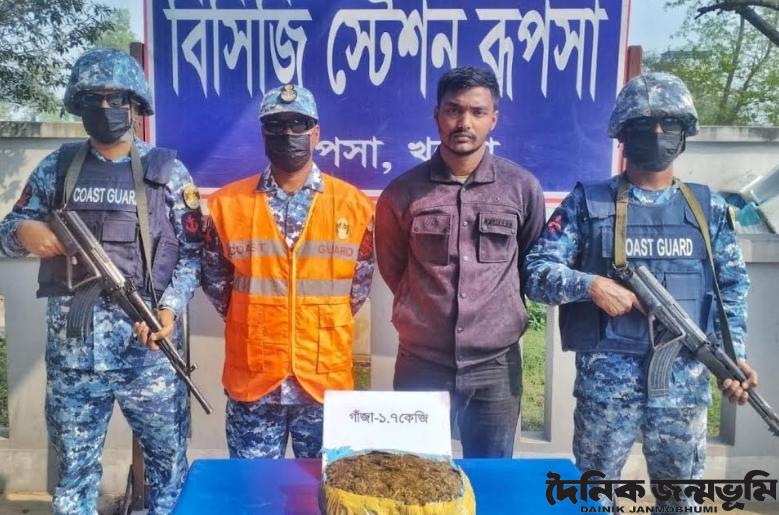 দাকোপ (খুলনা) প্রতিনিধি : খুলনার রূপসায় কোস্ট গার্ডের অভিযানে গাঁজাসহ এক মাদক কারবারি আটক হয়েছে। গতকাল বুধবার দুপুরে কোস্ট গার্ড পশ্চিম জোনের মিডিয়া কর্মকর্তা লেফটেন্যান্ট কমান্ডার মাহবুব হোসেন এ তথ্যের সত্যতা নিশ্চিত করেন। তিনি বলেন, গোপন সংবাদের ভিত্তিতে বুধবার রাত ১টায় কোস্ট গার্ড স্টেশন রূপসা কর্তৃক খুলনার রূপসা উপজেলাধিন আলাইপুর এলাকায় একটি বিশেষ অভিযান পরিচালনা করে। অভিযান চলাকালীন উক্ত এলাকায় তল্লাশি চালিয়ে প্রায় ৫৪ হাজার ৪০০ টাকা মূল্যের ১ কেজি ৭০০ গ্রাম গাঁজাসহ এক মাদক কারবারিকে আটক করা হয়। আটক ব্যক্তি হলেন একই উপজেলার আন্দাবাজ এলাকার ইসমাইল হাওলাদারের ছেলে মুন্না ইসলাম (২৪)। জব্দকৃত আলামত ও আটক মাদক কারবারির বিরুদ্ধে পরবর্তী আইনানুগ ব্যবস্থা গ্রহণের নিমিত্তে রূপসা থানায় হস্তান্তর করা হয়েছে।