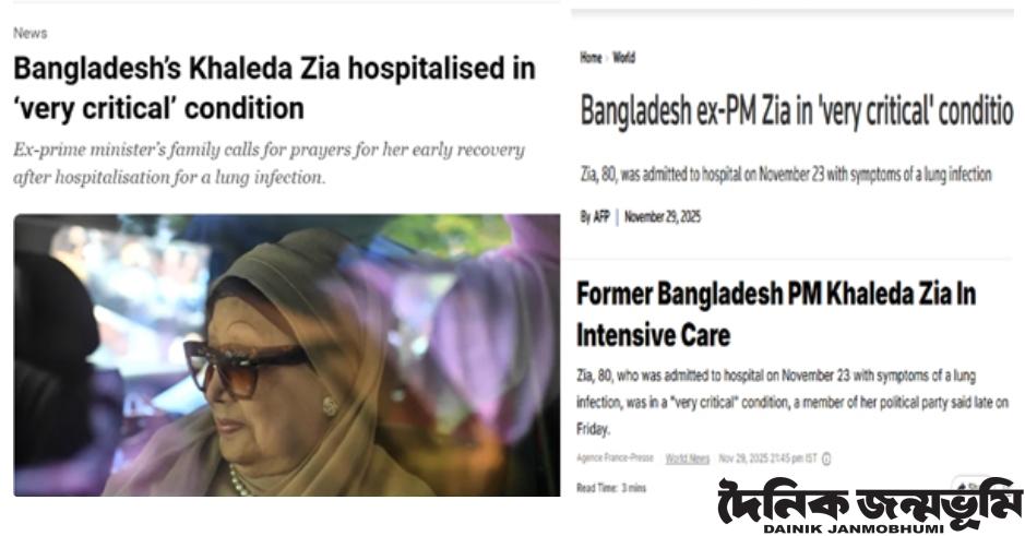খালেদা জিয়ার অসুস্থতার খবর আন্তর্জাতিক গণমাধ্যমে