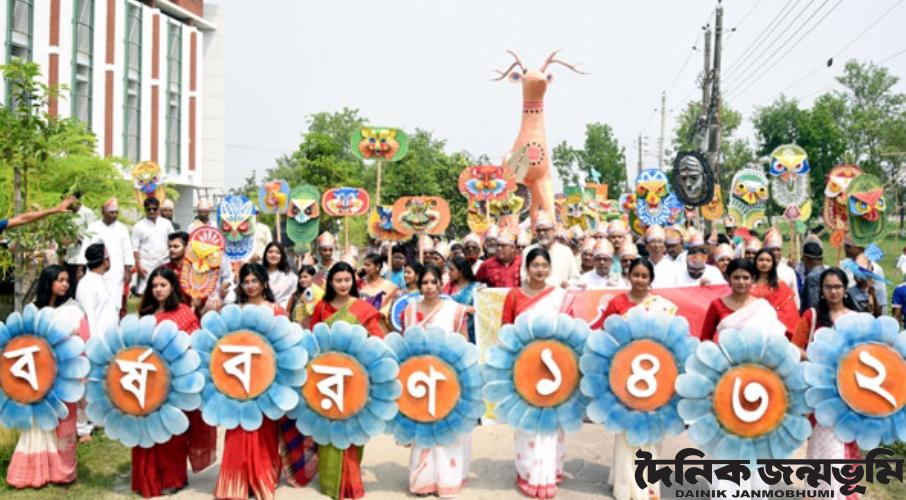 উদ্বোধনী অনুষ্ঠান শেষে শিক্ষক-শিক্ষার্থী, কর্মকর্তা-কর্মচারীদের স্বতঃস্ফূর্ত অংশগ্রহণে চারুকলা স্কুল থেকে বের হয় বর্ণাঢ্য শোভাযাত্রা। মুখোশ, আলপনা, ঢাক-ঢোল, কাঠের তৈরি কারুকাজ ও নানা ঐতিহ্যবাহী অনুষঙ্গে সজ্জিত শোভাযাত্রাটি বিশ্ববিদ্যালয়জুড়ে ছড়িয়ে দেয় নববর্ষের রঙিন বার্তা।