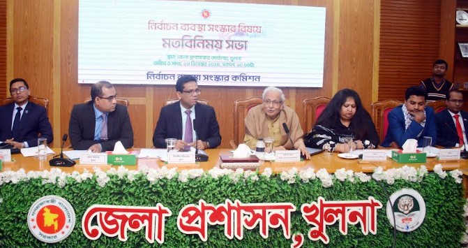 তথ্যবিবরণী : নির্বাচন ব্যবস্থা সংস্কার বিষয়ে মতবিনিময়সভা আজ শুক্রবার সকালে খুলনা জেলা প্রশাসকের সম্মেলনকক্ষে অনুষ্ঠিত হয়। সভায় প্রধান অতিথি ছিলেন নির্বাচন ব্যবস্থা সংস্কার কমিশনের প্রধান ড. বদিউল আলম মজুমদার।