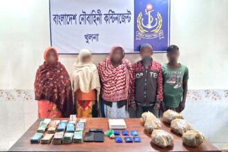 জানা যায়, আজ রবিবার খুলনা সদর নৌ কন্টিনজেন্ট ৬নং ঘাট এলাকায় কয়লার ডিপো বস্তিতে অভিযান পরিচালনা করে। অভিযানকালে সন্দেহজনক একাধিক বাসায় তল্লাশি করে রাসেল হাওলাদার, আকবর তালুকদার, তাসলিমা বেগম, শাহনাজ বেগম এবং হোসনে আরা বেগম নামক ০৫ জন মাদক কারবারীকে আটক করে। এ সময় ১ হাজার ৩৬৫ পিস ইয়াবা, ১ কেজি ৭৫০ গ্রাম গাঁজা, ২টি স্মার্ট ফোন, ১টি বাটন ফোন, ১টি ডিজিটাল নিক্তি এবং মাদক বিক্রয়ের নগদ ২ লাখ ৩৭ হাজার ৩৬৫ টাকা উদ্ধার করা হয়।