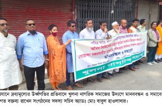খুলনায় রমজানে দ্রব্যমূল্যের ঊর্ধ্বগতির প্রতিবাদে নাগরিক সমাজের মানববন্ধন
