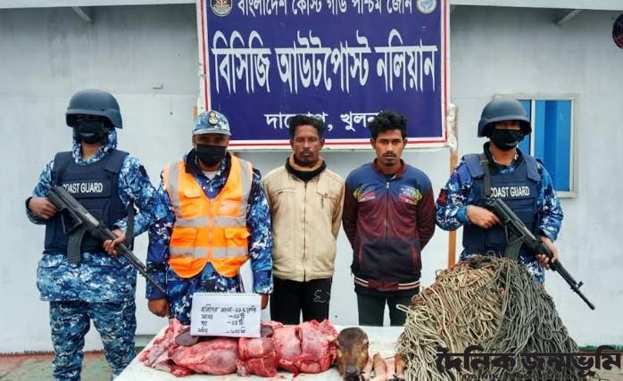 লেফটেন্যান্ট কমান্ডার সিয়াম-উল-হক বলেন, গত শুক্রবার দিবাগত রাত ২টার দিকে কোস্টগার্ড আউটপোস্ট নলিয়ান কর্তৃক খুলনা জেলার দাকোপ উপজেলার সুন্দরবনের নলিয়ান সংলগ্ন মুচির দোয়ানী খালে একটি বিশেষ অভিযান পরিচালনা করা হয়। অভিযান চলাকালীন উক্ত এলাকা হতে সাড়ে ২১ কেজি হরিণের মাংস, ১টি হরিণের মাথা, ৪টি পা ও ৬০০ মিটার হরিণ শিকারের ফাঁদসহ ২ জন হরিণ শিকারিকে আটক করা হয়। আটককৃতরা হলেন ৬ নম্বর কয়রা গ্রামের আজিবর মোল্লার ছেলে আবু মুসা এবং একই এলাকার জিযারুল ইসলামের ছেলে ইমরান হোসেন। তিনি আরো জানান, জব্দকৃত হরিণের মাংস, মাথা, পা, ফাঁদ ও আটককৃত ব্যক্তিদের আইনানুগ ব্যবস্থা গ্রহণের জন্য নলিয়ান ফরেস্ট অফিসের নিকট হস্তান্তর করা হয়েছে।