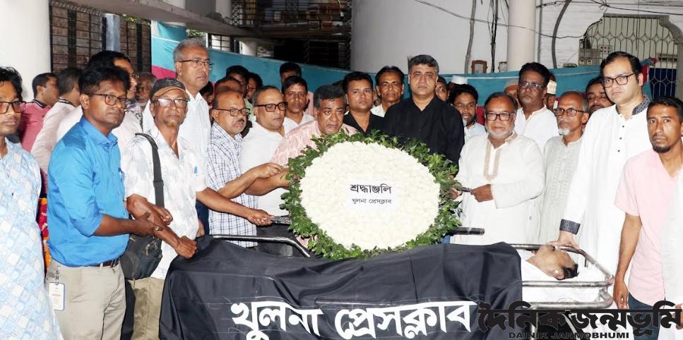 আজ শনিবার দুপুরে খুলনা প্রেসক্লাবের পক্ষ থেকে শেষশ্রদ্ধা নিবেদনের জন্য মরহুমের মরদেহ ক্লাব চত্বরে আনা হয়। সেখানে খুলনা প্রেসক্লাবের পক্ষ থেকে প্রথমে শ্রদ্ধা নিবেদন করা হয়। খুলনা প্রেসক্লাবের আহবায়ক এনামুল হক, সদস্য সচিব রফিউল ইসলাম টুটুল, কার্যনির্বাহী সদস্য শেখ দিদারুল আলম, মোঃ মিজানুর রহমান মিলটন, কৌশিক দে, আহমদ মুসা রঞ্জু ও আশারাফুল ইসলাম নূরসহ ক্লাবের অন্যান্য সদস্যরা উপস্থিত ছিলেন।