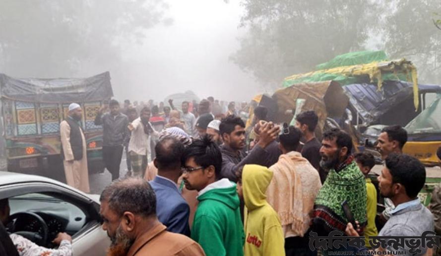 ভাটিয়াপাড়া হাইওয়ে পুলিশের উপ-পরিদর্শক রুমান মোল্লা বলেন, ঘন কুয়াশার মধ্যে সকালে ঢাকা খুলনা মহাসড়কের ঘোষগাতি এলাকায় চারটি গাড়ির সংঘর্ষ হয়। এতে ঘটনাস্থলেই একজন নিহত হন। আহত হন ২০ জন। আইনানুগ প্রক্রিয়া চলমান রয়েছে।