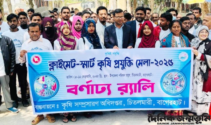 ডেস্ক নিউজ : বাগেরহাটের চিতলমারীতে ক্লাইমেট স্মার্ট প্রযুক্তির মাধ্যমে খুলনা কৃষি অঞ্চলের জলবায়ু পরিবর্তন অভিযোজন প্রকল্পের আওতায় তিন দিন ব্যাপী ‘ক্লাইমেট স্মার্ট কৃষি প্রযুক্তি মেলা’র শুভ উদ্বোধন করা হয়েছে। উপজেলা কৃষি অধিদপ্তরের আয়োজনে সোমবার (১০ ফেব্রুয়ারী) সকাল সাড়ে ১১ টায় উপজেলা পরিষদ চত্বরে এ মেলার উদ্বোধন হয়। আগামী ১২ ফেব্রয়ারী বুধবার বিকেলে এ মেলার সমাপনী ও পুরস্কার বিতরন অনুষ্ঠান হবে।