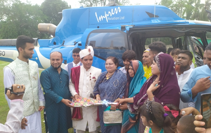 চিতলমারী প্রতিনিধি : বাগেরহাটের চিতলমারীতে এই প্রথম বারের মত হেলিকপ্টারে চড়ে বিয়ে করতে এলেন বর। হেলিকপ্টরে করে বর আসার