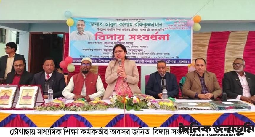 চৌগাছা( যশোর) প্রতিনিধিঃ যশোরের চৌগাছা উপজেলা মাধ্যমিক শিক্ষা কর্মকর্তা আবুল কালাম রফিকুজ্জামানের অবসর জনিত বিদায় সংবর্ধনা অনুষ্ঠান অনুষ্ঠিত হয়েছে। সংবর্ধনা উপলক্ষে শনিবার (১১ জানুয়ারি ) সকাল ১১ টায় চৌগাছা মডেল মাধ্যমিক বিদ্যালয় মাঠে এক অনুষ্ঠানের আয়োজন করা হয়।