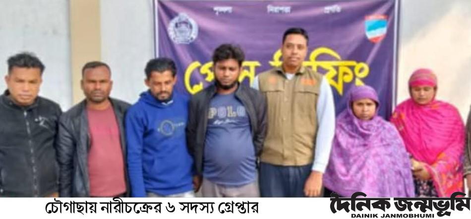 গ্রেফতারকৃতরা হলেন, চৌগাছা যাত্রাপুর গ্রামের আলমগীরের স্ত্রী রুপালি খাতুন (৩৫), মনমথপুরের মৃত মান্নানের ছেলে হৃদয় মহিফুল (৩৬) ও একই গ্রামের তাজুল ইসলামের ছেলে দেলোয়ার হোসেন, কয়ারপাড়ার শাহজাহান আলীর ছেলে নান্নু মিয়া (৩৩) ও তার স্ত্রী জাকিয়া (২৯), মহেশপুর মান্দার বাড়িয়া গ্রামের আয়ুব হোসেনর ছেলে জাহিদ হোসেন (২৯) ।