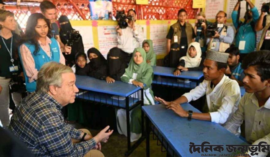 রোহিঙ্গা ক্যাম্পে জাতিসংঘ মহাসচিব রোহিঙ্গা লার্নিং সেন্টার, রোহিঙ্গাদের সাংস্কৃতিক কেন্দ্র ও পাটজাত পণ্যের উৎপাদন কেন্দ্র পরিদর্শন করেন এবং ক্যাম্পে অবস্থানরত রোহিঙ্গাদের সাথে কুশল বিনিময় করেন।
