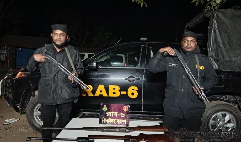 এরই ধারাবাহিকতায় গোপন সংবাদের ভিত্তিতে অভিযান চালিয়ে পরিত্যক্ত অবস্থায় ২২ ক্যালিবারের একটি একনলা বন্দুক ও একটি এয়ারগান উদ্ধার করা হয়।’