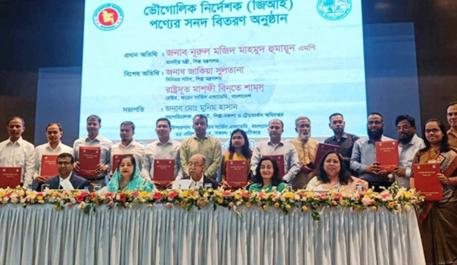 পেটেন্ট, শিল্প নকশা ও টেডমার্কস অধিদপ্তরের আয়োজনে অনুষ্ঠানে বিশেষ অতিথি হিসেবে উপস্থিত ছিলেন শিল্প সচিব জাকিয়া সুলতানা। আরো উপস্থিত ছিলেন ফরেন সার্ভিস অ্যাকাডেমির রেক্টর রাষ্ট্রদূত মাশফী বিনতে শামস, পেটেন্ট শিল্প নকশা ও টেডমার্কস অধিদপ্তরের মহাপরিচালক মনিম হাসান। অনুষ্ঠানে ১৪টি পণ্যের সনদ দেয়া হয়। এ নিয়ে মোট ৩১টি পণ্যের জিআই সনদ দেয়া হয়েছে।