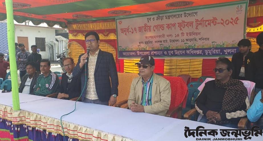 ডুমুরিয়া উপজেলায় তারুণ্যের উৎসব-২০২৫ জাতীয় গোল্ডকাপ ফুটবল টুর্নামেন্ট (অনূর্ধ্ব-১৭) শুভ উদ্বোধন করা হয়েছে। এবারের শ্লোগান ছিলো ‘এসো দেশ বদলাই, পৃথিবী বদলাই’।