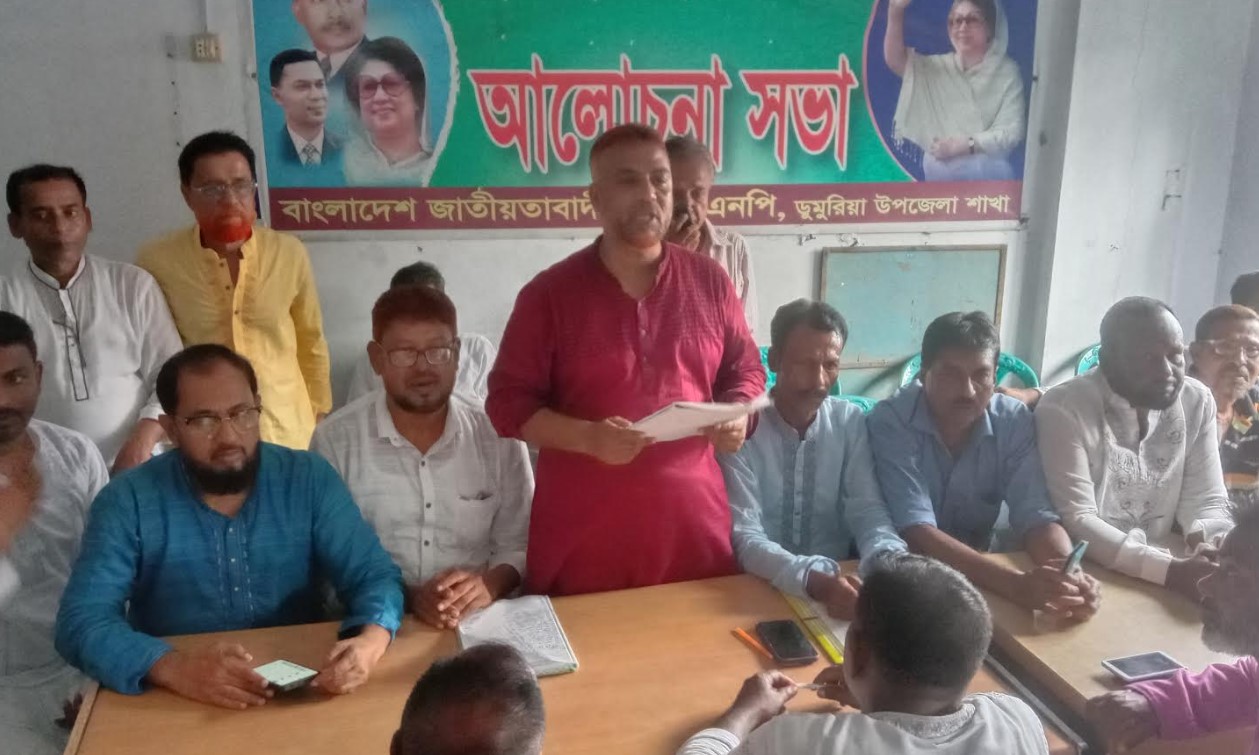 ডুমুরিয়া প্রতিনিধি : ডুমুরিয়া উপজেলা বিএনপির আয়োজনে সকল ইউনিয়নে বিএনপির পূর্ণাঙ্গ কমিটি গঠনের লক্ষে এক প্রস্তুতিমূলক সভা অনুষ্ঠিত হয়েছে। শুক্রবার বিকেলে দলীয় কার্যালয়ে আয়োজিত সভায় সভাপতিত্ব করেন উপজেলা বিএনপির আহ্বায়ক মোল্যা মোশাররফ হোসেন মফিজ। সভায় বক্তব্য রাখেন উপজেলা বিএনপির সদস্য সচিব সরদার আব্দুল মালেক, যুগ্ম আহবায়ক শেখ সরোয়ার হোসেন, শেখ হাফিজুর রহমান, শেখ হেলাল উদ্দিন, মোল্লা কবির হোসেন,মোল্যা মাহাবুর রহমান, অরুণ কুমার গোলদার, শেখ শাহিনুর রহমান, শেখ ফরহাদ হোসেন, খান আফজাল হোসেন, শেখ শাহিনুর রহমান শাহিন,শেখ আতিয়ার রহমান, আমিরুল ইসলাম হালদার, শহিদুল ইসলাম মোড়ল, শাহানুর রহমান,এফএম গোলাম সরোয়ার, শফিকুল ইসলাম খান, আহম্মদ আলী ফকির, শফিকুল ইসলাম, প্রফেসর আমান উল্লাহ,অংশুপতি মন্ডল, মোনায়েম গাজী, আঃ গফ্ফার, ইকরামুল মোল্লা, আজমল হুদা মিঠু, আঃ সালাম সরদার, শফিকুল জোয়ার্দার, জামিনুর রহমান,নুর ইসলাম শেখ, মাষ্টার আয়ুব হোসেন, দেলোয়ার হোসেন, রাসেল হালদার,স্বপন মিস্ত্রী প্রমুখ।