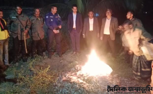 ডুমুরিয়ায় জেলি পুশকৃত চিংড়ি মাছ বিনষ্ট