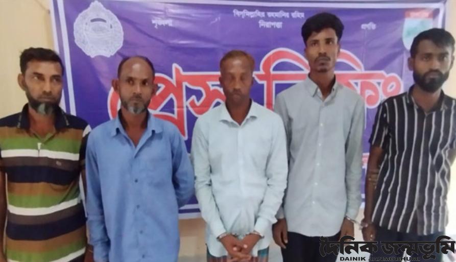 গ্রেফতারকৃত আসামীরা হলেন, ডুমুরিয়া উপজেলার গোবিন্দকাটি গ্রামের শওকত শেখের ছেলে রাফসান(২৩), খবির উদ্দিনের ছেলে শরিফুল (৪৫), কেশবপুরের গৌরিঘোনা গ্রামের কাজেম ফকিরের ছেলে গফুর ফকির(৪৫), খোদাবক্স সরকারের ছেলে মঞ্জুরুল সরদার(৪২) ও কক্সবাজার সদরের দক্ষিণ পাহাড়তলী এলাকার নুরুল ইসলামের ছেলে এনামুল (৩০)। তথ্যপ্রযুক্তির মাধ্যমে চট্রগ্রামসহ বিভিন্ন এলাকায় অভিযান চালিয়ে শুক্রবার ভোর রাতে আসামীদের গ্রেফতার করা হয়।
