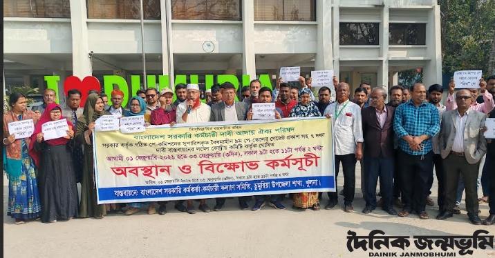 ডুমুরিয়ায় সরকারি কর্মকর্তা-কর্মচারীদের অবস্থান ও বিক্ষোভ