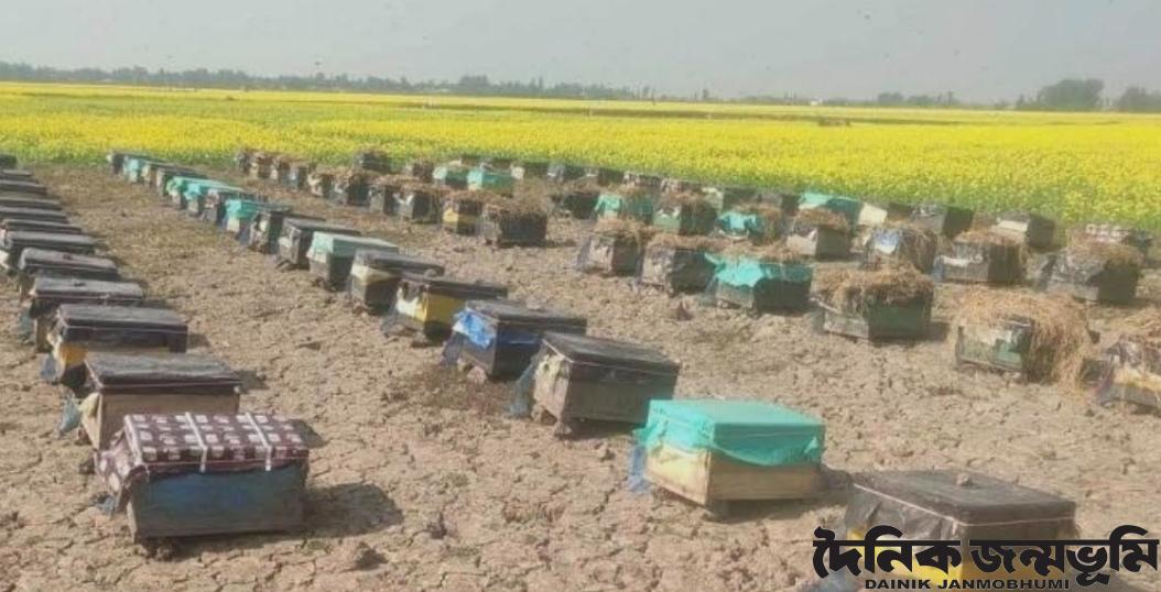 ডুমুরিয়ায় সরিষা ক্ষেতে মৌমাছি ছেড়ে বাক্সে মধু সংগ্রহ