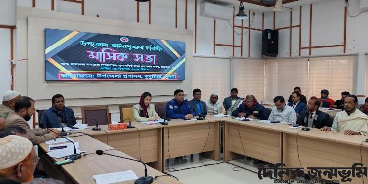 শেখ মাহতাব হোসেন, ডুমুরিয়া : ডুমুরিয়া উপজেলা প্রশাসনের আয়োজনে সোমবার ২৯ ডিসেম্বর সকাল ১১টায় ডুমুরিয়া উপজেলা কমপ্লেক্স সম্প্রসারিত প্রশাসনিক ভবন সম্মেলন কক্ষে উপজেলা আইনশৃঙ্খলা কমিটির মাসিক সভা অনুষ্ঠিত হয়।