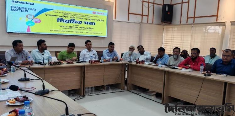 শেখ মাহতাব হোসেন, ডুমুরিয়া : সলিডেরিড্যাড ও উত্তরণের বাস্তবায়নে বুধবার ২৯অক্টোবর সকাল ১১টায় ডুমুরিয়া উপজেলা পরিষদ সম্মেলন কক্ষে সফল ফর ইনটিগ্রেটেড ওয়াটার রিসোর্স ম্যানেজমেন্ট প্রজেক্ট(সমন্বিত পানি ব্যবস্থাপনায় সফল প্রকল্প) উপজেলা সমন্বিত পানি সম্পদ ব্যবস্থাপনা কমিটির নিয়মিত সভা অনুষ্ঠিত হয় । সভায় সভাপতিত্ব করেন ডুমুরিয়া উপজেলা নির্বাহী অফিসার মুহাম্মাদ আল আমিন, বক্তব্য দেন বক্তব্য দেন নবাগতা ডুমুরিয়া উপজেলা সহকারী কমিশনার ভূমি অমিত কুমার বিশ্বাস, ডুমুরিয়া উপজেলা কৃষি অফিসার কৃষিবিদ মোঃ ইনসান ইবনে আমিন, খুলনা পানি উন্নয়ন বোর্ডের উপর বিভাগীয় প্রকৌশলী মোঃ আতিকুর রহমান,