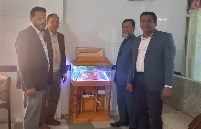 ডুমুরিয়া মৎস্য অফিসে একুরিয়ামে বাহারী রং এর মাছ চাষ