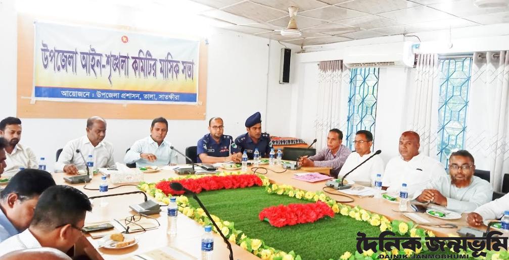 তালা প্রতিনিধি : সাতক্ষীরার তালায় উপজেলা আইন-শৃঙ্খলা কমিটির মাসিক সভা অনুষ্ঠিত হয়েছে। মঙ্গলবার (২৯ এপ্রিল) সকালে উপজেলা সম্মেলন কক্ষে অনুষ্ঠিত সভায় সভাপতিত্ব করেন তালা উপজেলা নির্বাহী অফিসার শেখ মোঃ রাসেল। সভায় উপস্থিত ছিলেন তালা উপজেলা সহকারী কমিশনার (ভূমি) মোঃ মাসুদুর রহমান, উপজেলা বিএনপির সাবেক সভাপতি মৃনাল কান্তি রায়, সাবেক সাধারণ সম্পাদক ও মহিলা কলেজের অধ্যক্ষ (ভারপ্রাপ্ত) সেখ শফিকুল ইসলাম, জামায়াতের সেক্রেটারী ইদ্রিস আলী, জালালপুর ইউপি চেয়ারম্যান এম মফিদুল হক লিটু, ইসলামকাটি ইউপি চেয়ারম্যান অধ্যাপক গোলাম ফারুক, ধানদিয়া ইউপি চেয়ারম্যান জাহাঙ্গীর হোসেন, খলিষখালী ইউপি চেয়ারম্যান সাবির হোসেন, উপজেলা সিনিয়র মৎস্য কর্মকর্তা তারিক ইমাম, তালা প্রেসক্লাবের সভাপতি এম এ হাকিম প্রমুখ।