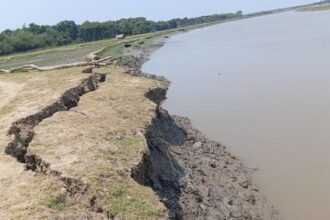 গাজী জাহিদুর রহমান, তালা : সাতক্ষীরার তালা উপজেলার খেশরা ইউনিয়নের ডুমুরিয়া ও শাহাজাতপুর অঞ্চলে কপোতাক্ষ নদের ৪টি স্থানে বেড়িবাঁধে ভয়াবহ ভাঙ্গন দেখা দিয়েছে। যেকোনো মুহুর্তে বেড়িবাঁধ ভেঙ্গে বিস্তৃর্ণ এলাকা প্লাবিত হতে পারে। এ ঘটনায় এলাকাবাসির মধ্যে আতঙ্ক বিরাজ করছে। ক্ষেতের পাকা ধান ঘরে তোলার আশঙ্কায় নির্ঘুম রাত অতিবাহিত করছেন তারা। খবর পেয়ে তালা উপজেলা নির্বাহী কর্মকর্তা ঘটনাস্থল পরিদর্শন করেছেন।
