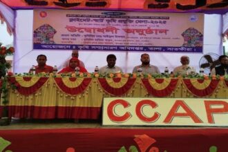 তালা প্রতিনিধি : “জলবায়ু সহনশীল কৃষি, প্রযুক্তি আনবে মোদের সমৃদ্ধি” এই প্রতিপাদ্য সামনে রেখে তালা উপজেলা পরিষদ চত্বরে ৩ দিনব্যাপি ক্লাইমেন্ট-স্মার্ট কৃষি প্রযুক্তি মেলার উদ্বোধন করা হয়েছে। ক্লাইমেন্ট-স্মার্ট প্রযুক্তির মাধ্যমে খুলনা কৃষি অঞ্চলের জলবায়ু পরিবর্তন অভিযোজন (১ম সংশোধিত) প্রকল্পের আওতায় ও কৃষি সম্প্রসারণ অধিদপ্তরের বাস্তবায়নে সোমবার (২৪ ফেব্রুয়ারি) সকালে প্রধান অতিথি হিসেবে উপস্থিত থেকে উক্ত মেলার উদ্বোধন করেন সাতক্ষীরা জেলা কৃষি সম্প্রাসরণ অধিদপ্তরের উপ-পরিচালক মোঃ সাইফুল ইসলাম। অনুষ্ঠানে সভাপতিত্ব করেন তালা উপজেলা সহকারী কমিশনার (ভূমি) মোঃ মাসুদুর রহমান এবং স¦াগত বক্তব্য রাখেন উপজেলা কৃষি অফিসার হাজিরা খাতুন। প্রকল্প উপস্থাপনা করেন সংশ্লিষ্ট প্রকল্পের প্রকল্প পরিচালক শেখ ফজলুল হক মনি। উপজেলা কৃষি সম্প্রসারণ কর্মকর্তা আফরোজা আক্তার রুমার সঞ্চালনায় অনুষ্ঠানে আরও উপস্থিত ছিলেন তালা থানার অফিসার ইনচার্জ (ওসি) শেখ শাহিনুর রহমান, তালা প্রেসক্লাবের সভাপতি এমএ হাকিম, কৃষি সম্প্রসারণ কর্মকর্তা জিএম শাওন প্রমুখ।