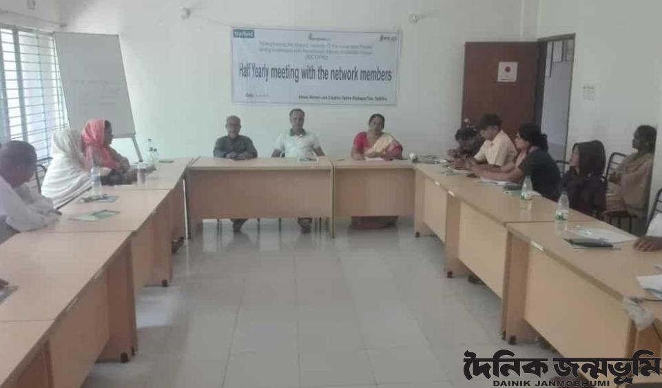 তালা প্রতিনিধি : শনিবার (২৫ অক্টোবর) সকালে তালার শাহাপুর উইমেন জব ক্রিয়েশন সেন্টার অফিসে “জলবায়ু পরিবর্তনের বিরূপ প্রভাবের মুখোমুখি অরক্ষিত মানুষের সহনশীলতা শক্তিশালীকরণ” প্রকল্পের আওতায় নেটওয়ার্কের সদস্যদের অর্ধবার্ষিক সভা অনুষ্ঠিত হয়। অনুষ্ঠানে সভাপতিত্ব করেন ও স্বাগত বক্তব্য রাখেন উইমেন জব ক্রিয়েশন সেন্টারের নির্বাহী পরিচালক আশরাফুন্নাহার আশা। জলবায়ু পরিবর্তন বিষয়ক নেটওয়ার্কিং কমিটির সহ-সভাপতি অধ্যাপক রেজাউল করিমের সঞ্চালনায় সভায় উপস্থিত ছিলেন নেটওয়ার্কের সদস্য তালা সদর ইউনিয়ন পরিষদের ভারপ্রাপ্ত চেয়ারম্যান শেখ আব্দুর রাজ্জাক, ভূমিজ ফাউন্ডেশন পরিচালক অচিন্ত্য সাহা, রুপালী পরিচালক সফিকুল ইসলাম, উপজেলা পানি কমিটির সাধারণ সম্পাদক মীর জিল্লুর রহমান, সৃজনী পরিচালক জোৎসা দত্ত, নারী উন্নয়ন সংস্থার গুলশান আরা, ইউপি সদস্য শিরিনা খাতুন, কমিটির সদস্য দিলীপ সানা,আব্দুল আলিম, শেখ সেলিম আক্তার স্বপন, প্রভাষক কামরুজ্জামান, গাজী শহীদুল্লাহ, রেবেকা খাতুন, মোবারক হোসেন, টুম্পা খাতুন, সাংবাদিক গাজী জাহিদুর রহমান, বিএম জুলিফিকার রায়হান, সেলিম হায়দার প্রমুখ। সভায় মাল্টিমিডিয়ার মাধ্যমে বিগত দিনের কার্যক্রম উপস্থাপন করেন উইমেন জব ক্রিয়েশন সেন্টারের কর্মসূচী সমন্বয়কারী কাজী বাবর আলী। সভায় জলবায়ু পরিবর্তনের প্রভাব, উদ্যোগ ও ভবিষ্যৎ করণীয় নিয়ে বিস্তারিত আলোচনা করা হয়।