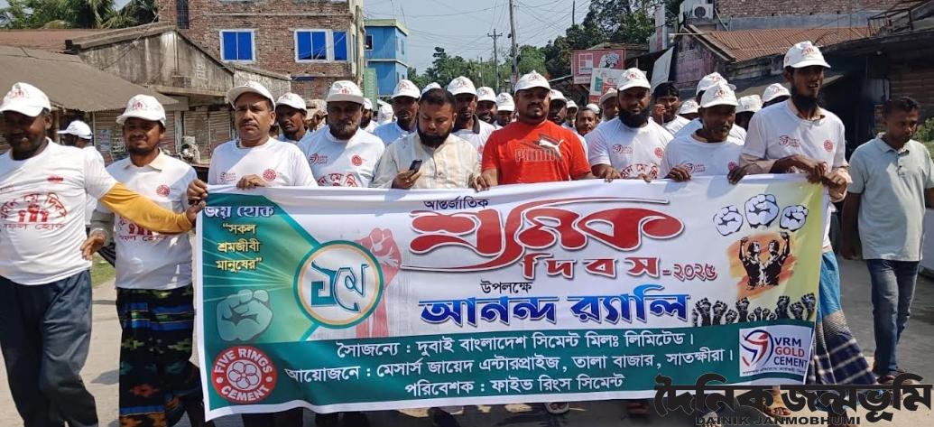 তালা প্রতিনিধি : সাতক্ষীরার তালায় জায়েদ এন্টারপ্রাইজের উদ্যোগে ও দুবাই বাংলাদেশ সিমেন্ট মিলঃ লিঃ এর সার্বিক ব্যবস্থাপনায় উপজেলায় কর্মরত নির্মাণ শ্রমিকদের নিয়ে আন্তর্জাতিক শ্রমিক দিবস উপলক্ষে র্যালী ও আলোচনা সভা অনুষ্ঠিত হয়েছে। বৃহস্পতিবার (১ মে) সকাল ৯ টায় র্যালী তালা মেলা বাজারের জায়েদ এন্টারপ্রাইজের সামনে থেকে শুরু হয়ে তালা বাজারের প্রধান প্রধান সড়ক প্রদক্ষিণ করে উপজেলা পরিষদ চত্বরে শেষ হয়। এ সময় সংক্ষিপ্ত আলোচনা সভায় সভাপতিত্ব করেন জায়েদ এন্টারপ্রাইজের স্বত্তাধিকারী ও তালা বাজার বণিক সমিতির আহবায়ক এস এম নুরুল ইসলাম। ইমারাত শ্রমিক ইউনিয়নের সাধারণ সম্পাদক বিল্লাল হোসেনের সঞ্চালনায় প্রধান অতিথি হিসেবে বক্তব্য রাখেন তালা উপজেলা সহকারী কমিশনার (ভূমি) মোঃ মাসুদুর রহমান। বিশেষ অতিথি হিসেবে বক্তব্য রাখেন দুবাই বাংলাদেশ সিমেন্ট মিলঃ লিঃ এর মার্কেটিং এক্সজিকিউটিভ মোঃ মোস্তাফিজুর রহমান। বক্তব্য রাখেন তালা উপজেলা ইমারাত শ্রমিক ইউনিয়নের সভাপতি হারুণ-অর-রশিদ খোকন, শ্রমিক নেতা কবিরুল ইসলাম, রবিউল ইসলাম, হেকতম আলী, খায়রুল ইসলাম, সরোউদ্দীন লিয়াকত হোসেন প্রমুখ। এ সময় তালা উপজেলা ইমরত শ্রমিক ইউনিয়নের শতাধিক নেতাকর্মী উপস্থিত ছিলেন।